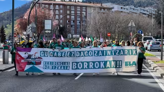 En el transcurso de la manifestación, la representante de ELA Ainhoa Tirapu ha criticado que, cuando la patronal son las instituciones y se habla de condiciones laborales de las mujeres, "los conflictos laborales se alargan una barbaridad".