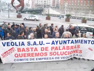 Así lo ha afirmado el presidente del comité de empresa, Pedro Angulo, en una concentración que ha reunido a medio centenar de trabajadores en la escalinata del Consistorio bilbaíno, tras una pancarta que rezaba "Veolia-Ayuntamiento: Basta de palabras, queremos soluciones".