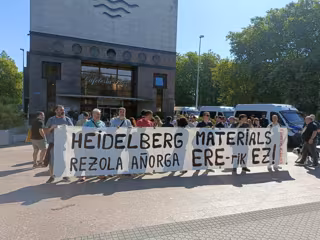La responsable de la Federación de Industria de LAB en Gipuzkoa, Usua Lasa, y la de ELA, Esther Arruti, han realizado declaraciones a los medios durante la concentración que ha tenido lugar bajo el lema 'Heidelberg Materials. Rezola Añorga. ERE no' en una pancarta. Antes de la movilización, miembros del Comité han sido identificados por agentes de la Ertzaintza.