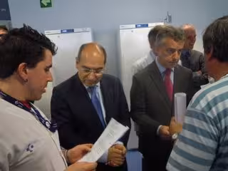 Tras intercambiar unas palabras con el consejero a las puertas del nuevo edificio, uno de los trabajadores ha obtenido permiso para acceder al mismo, y, durante la visita a las instalaciones, ha entregado a ambos mandatarios una carta que recogía sus críticas, centradas, fundamentalmente, en la "mayor carga de trabajo" que, aseguran, sufren los trabajadores de Osakidetza, así como la "menor contratación" llevada a cabo por el Departamento este año.