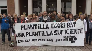 En una concentración a las puertas del hospital, el delegado de ESK José Ignacio Martínez ha denunciado, en nombre de todos los sindicatos, el intento de la dirección del centro de iniciar el próximo año un proceso de reestructuración de la plantilla, por la que va a eliminar 200 puestos de trabajo "debido al impacto del Hospital de Urduliz", lo que, a su entender, empeorará las condiciones en las que desarrollan su labores los trabajadores de Cruces.