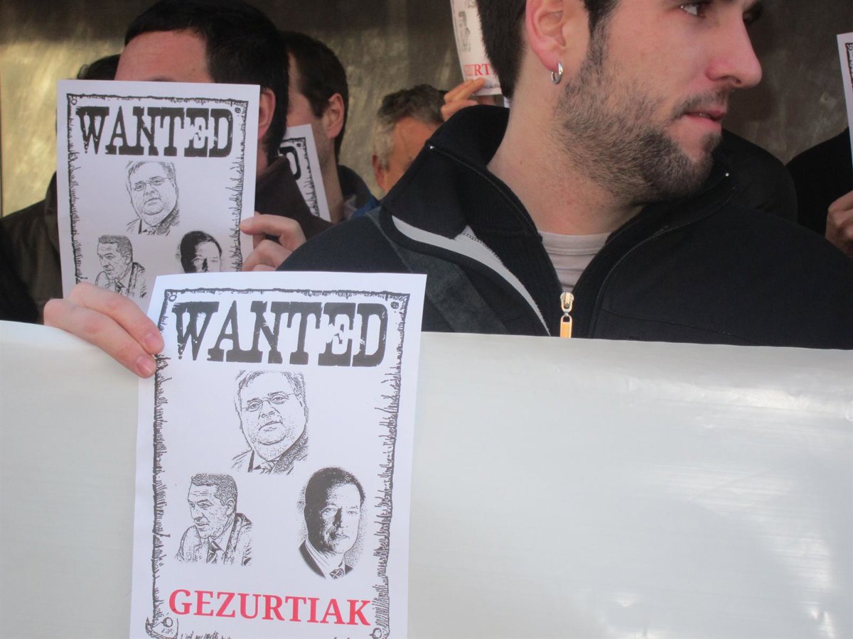 Durante la concentración de este martes por la mañana, los trabajadores han desplegado una pancarta con el lema "En defensa de nuestros derechos. Bete akordioak (cumplir los acuerdos)", y han exhibido unos pasquines con la leyenda "Wanted gezurtiak (se buscan mentirosos)" con las fotos del presidente de Metro, Txema Oleaga, el gerente, José Antonio López Ansareo, y el consejero delegado, Iñaki Prego.