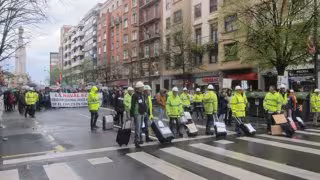 En la movilización, que ha arrancado pasadas las 18.00 horas del Sagrado Corazón y ha recorrido las principales calles de la capital vizcaína, encabezada por un grupo de trabajadores que portaban maletas y una pancarta en la que se podía leer 'La Naval ez itxi. Gobierno central-vasco negociación', los participantes han coreado gritos como 'Para Europa sí es legal, que se compre La Naval'.