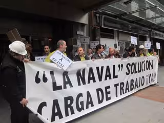 La concentración se ha desarrollado de once a doce del mediodía y, en el transcurso de la misma, los empleados han portado una pancarta en la que se podía leer "La Naval solución, carga de trabajo ya", además de carteles con mensajes como "La Naval ez itxi" (No al cierre de La Naval) o "Estamos que echamos humo".