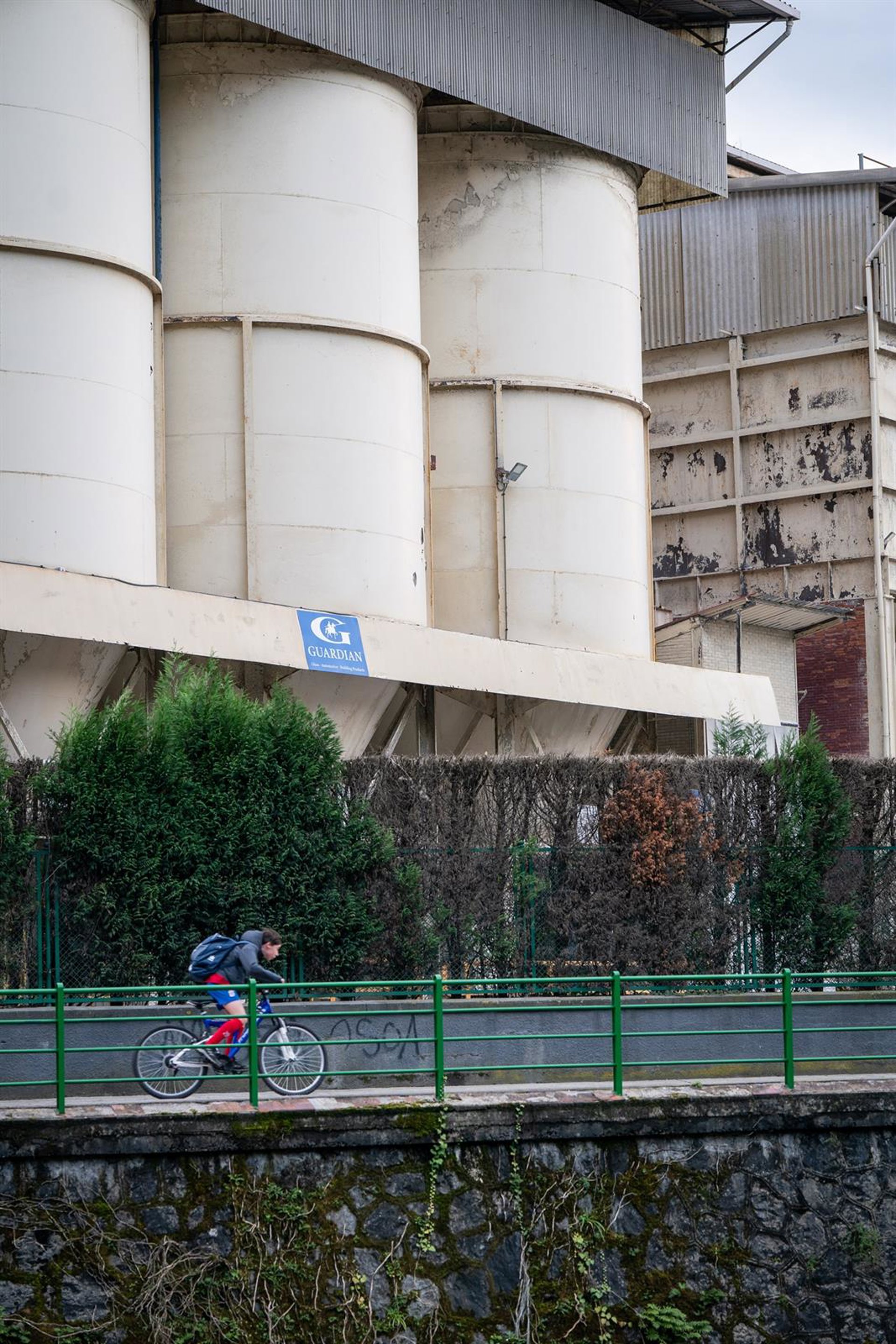 Una persona en bicicleta en el exterior de la fábrica de la multinacional Guardian, a 21 de enero de 2025, en Llodio, Álava, País Vasco (España). - Iñaki Berasaluce - Europa Press