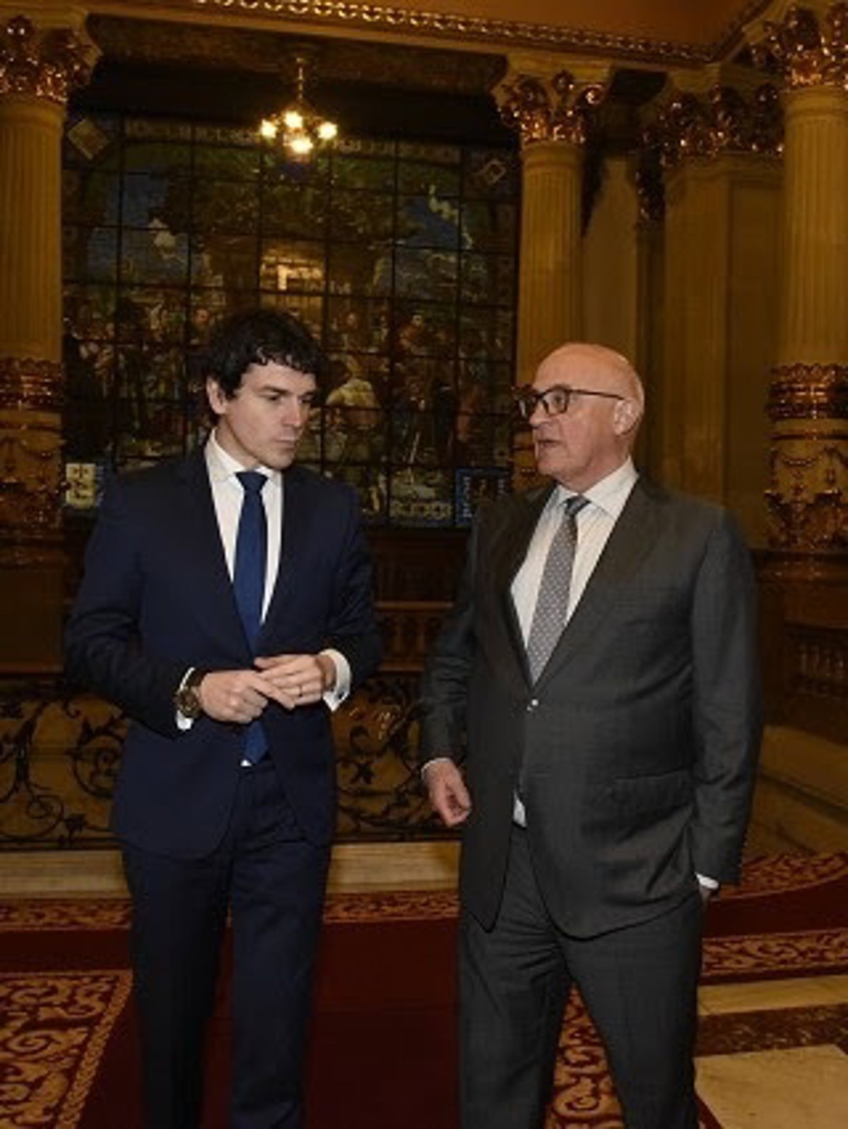 El diputado general de Bizkaia, Unai Rementeria, ha recibido esta tarde al presidente del Banco Sabadell, Josep Oliu. En el encuentro, el diputado general ha explicado al presidente de la entidad bancaria sus planes para recuperar la pujanza de Bizkaia y Bilbao como nodo financiero estatal e internacional.