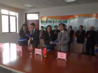Uriarte ha refrendado el acuerdo, junto con responsables de la FP de Tianjin, miembros del IMH y dirigentes de la Asociación de Fabricantes de Máquinas-Herramienta (AFM).