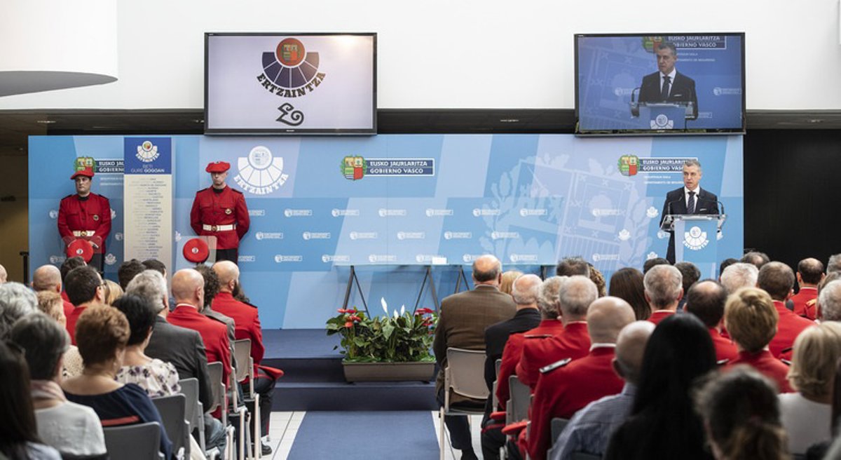 Urkullu ha realizado estas afirmaciones en el acto anual de homenaje a ertzainas fallecidos en acto de servicio, que este año ha tenido lugar en la base que la Ertzaintza tiene en Oiartzun (Gipuzkoa), y en el que ha estado acompañado por la consejera de Seguridad, Estefanía Beltrán de Heredia.