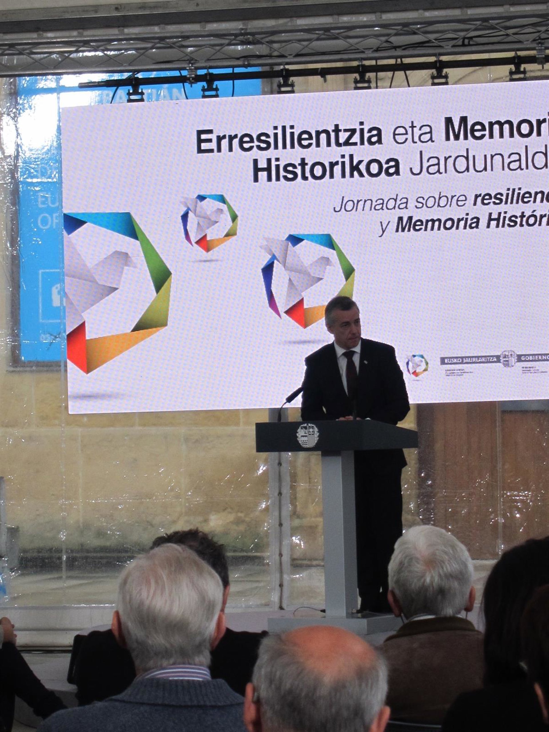 En un acto institucional este sábado en San Sebastián, el lehendakari ha hecho autocrítica y denunciado "la injusticia" que han padecido las víctimas de la Guerra Civil y del franquismo, las cuales han dado "una auténtica lección histórica" con su capacidad de "ponerse en pie y mirar hacia adelante".