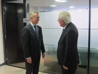 Durante el encuentro, a preguntas de los periodistas sobre el desarrollo del proceso de Paz en Colombia y la división que se da en el seno de la sociedad colombiana al respecto, el lehendakari ha señalado que percibe "un propósito positivo", así como "la esperanza de sortear obstáculos y las dificultades".