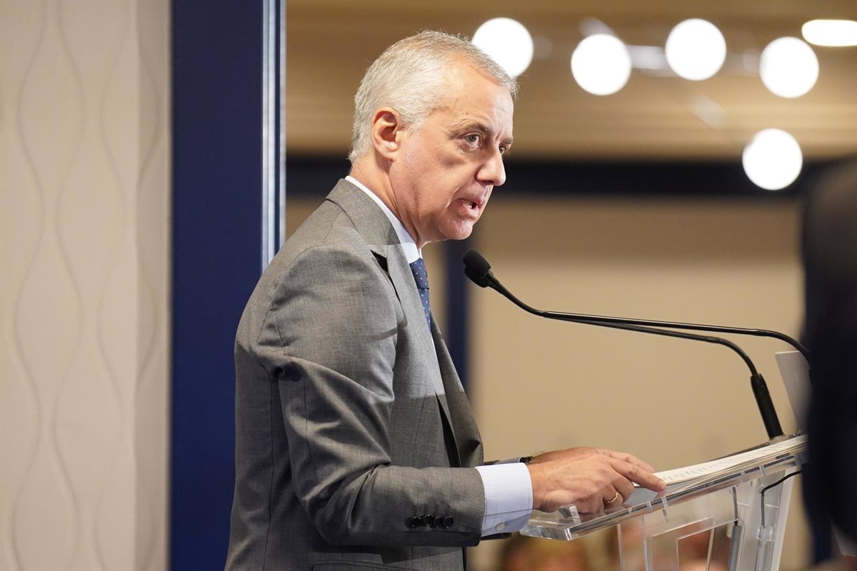 El Lehendakari, Iñigo Urkullu, interviene durante un desayuno informativo, en el Hotel Ercilla, a 29 de septiembre de 2023, en Bilbao, Vizcaya, País Vasco (España). - H.Bilbao - Europa Press