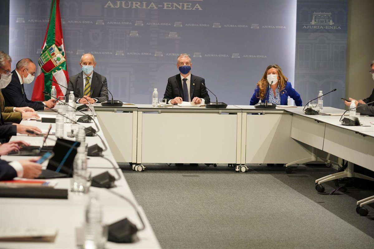 En la reunión han estado presentes los consejeros del Gobierno Vasco: Josu Erkoreka, Gotzone Sagardui (Salud), Olatz Garamendi (Gobernanza Pública y Autogobierno), Iñaki María Arriola (Planificación Territorial, Vivienda y Transportes), Jokin Bildarratz (Educación), Javier Hurtado (Turismo, Comercio y Consumo), Bingen Zupiria (Cultura) y José Luis Quintas (viceconsejero de Salud).