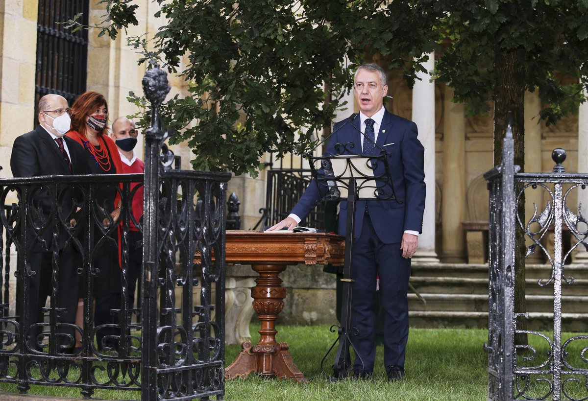 El acto ha estado marcado por las medidas de seguridad establecidas por el covid-19, que han obligado a variar el protocolo. Tan solo 30 invitados han podido seguir el acto y únicamente 62 de los 75 parlamentarios han entrado el hemiciclo, junto a familiares del lehendakari -su esposa y sus tres hijos, Karlos, Kerman y Malen- y la presidenta de las Juntas Generales, Ana Otadui.