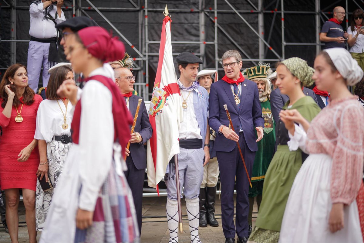 El alcalde de Vitoria, Gorka Urtaran (d), durante la ofrenda floral a la Virgen Blanca, en el día grande de las fiestas, a 5 de agosto de 2022, en Vitoria-Gasteiz, Álava - Iñaki Berasaluce - Europa Press