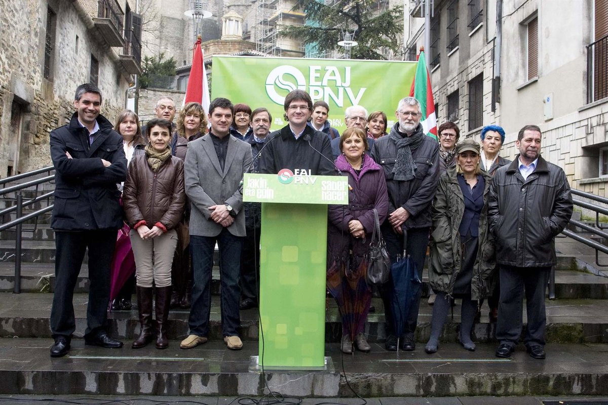 En un cantón del Casco Medieval vitoriano, Urtaran ha comparecido acompañado de algunos de los candidatos que componen la lista del PNV al Ayuntamiento de la capital alavesa.