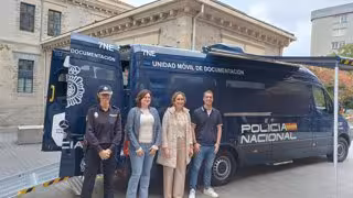 La subdelegada del Gobierno en Álava, Mar Dabán, junto con el alcalde de Amurrio, Txerra Molinuevo, y la comisaria provincial de la Policía Nacional, Teresa Herráez, han presentado en Amurrio el Vehículo Integral de Documentación, que ofrece un servicio itinerante para la expedición de DNI y pasaportes.
