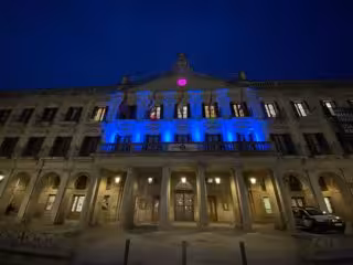 Archivo - Fachada del Ayuntamiento de Vitoria-Gasteiz iluminada de color azul - AYUNTAMIENTO DE VITORIA - Archivo