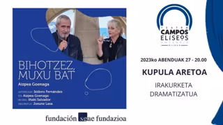 Aizpea Goienagaren 'Bihotzez, muxu bat' izenburuko irakurketa dramatizatuaren bertsio berria taularatuko dute egileak berak eta Isidoro Fernandez aktoreak asteazken honetan, abenduaren 27an, Bilboko Campos Eliseos antzokiko Kupula aretoan, SGAE erakundearen Lurralde Kontseiluaren ekimenez.