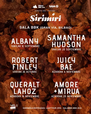 BBK-k eta Bilbao BBK Live jaialdiak antolatzen duten Sirimiri zikloak sei kontzertu eskainiko ditu irailaren 12tik azaroaren 20ra bitartean Bilboko BBK Salan, eta Albany, Samantha Hudson, Robert Finley, Juicy BAE, Queralt Lahoz eta Amore+Mirua ariko dira.