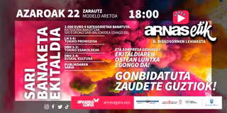 Arnasetik sormen lehiaketaren sari banaketa asteazkenean egingo da, azaroaren 22an, Zarauzko Modelo aretoan, 18:00etatik aurrera, Nahia Sillero aktore eta eduki sortzailearen gidaritzapean. Kategoria bakoitzeko lan onenari eta publikoaren sariaren irabazleari 500 euroko sari bana emango zaie, eta sari hori trukean erabili ahal izango dute Irrisarri Land-erako sarreretan, Durangoko Azokako denda birtualean edota EITB-ko 'Goazen!' eta 'Irabazi arte!' telesailen produktuetan gastatzeko. Sari banaketaz gain, sorpresa ugari ere izango dira, besteak beste, Deñe musikariaren emanaldia.