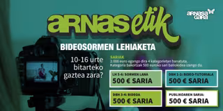 Arnasetik bideosormen lehiaketaren sari banaketa ekitaldia urriaren 28an izango da, Villabonan (Gipuzkoa), eta gazteek egingo dituzten sormen lanak urriaren 5a baino lehen jaso beharko dira. Ekitaldian, sariak banatzeaz gain, ezusteko ugari izango dira.