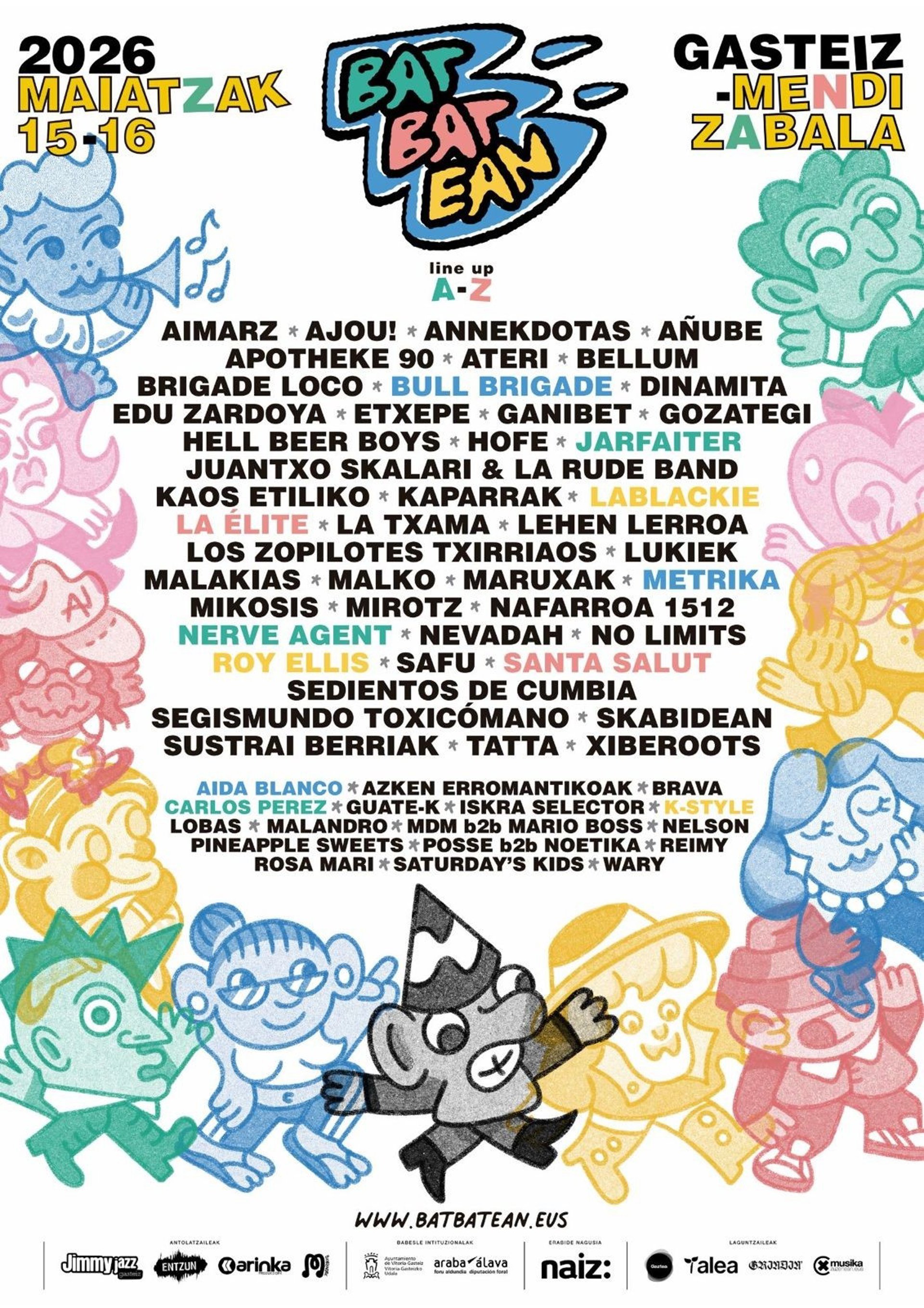Batbatean jaialdiaren lehenengo edizioa maiatzaren 15ean eta 16an egingo da Gasteizko Mendizabaleko gunean, eta guztira 45 talde eta 19 dj arituko dira, bost agertokitan banatuta, "egungo musikaren aniztasunaren eta aberastasunaren aldeko apustua berretsiz".