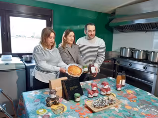 Nora Sarasola BBK-ko Gizarte Ekintzako zuzendariak astearte honetan aurkeztu ditu erakundeak Bizkaiko lehen sektoreari laguntzeko dituen ekimenen xehetasunak, Urduñako Santa Klara baserrira egindako bisitan, Mikel Kormenzana baserriaren jabea eta Arantza Meabe Urduñako gozogilea ere bertan zirela.