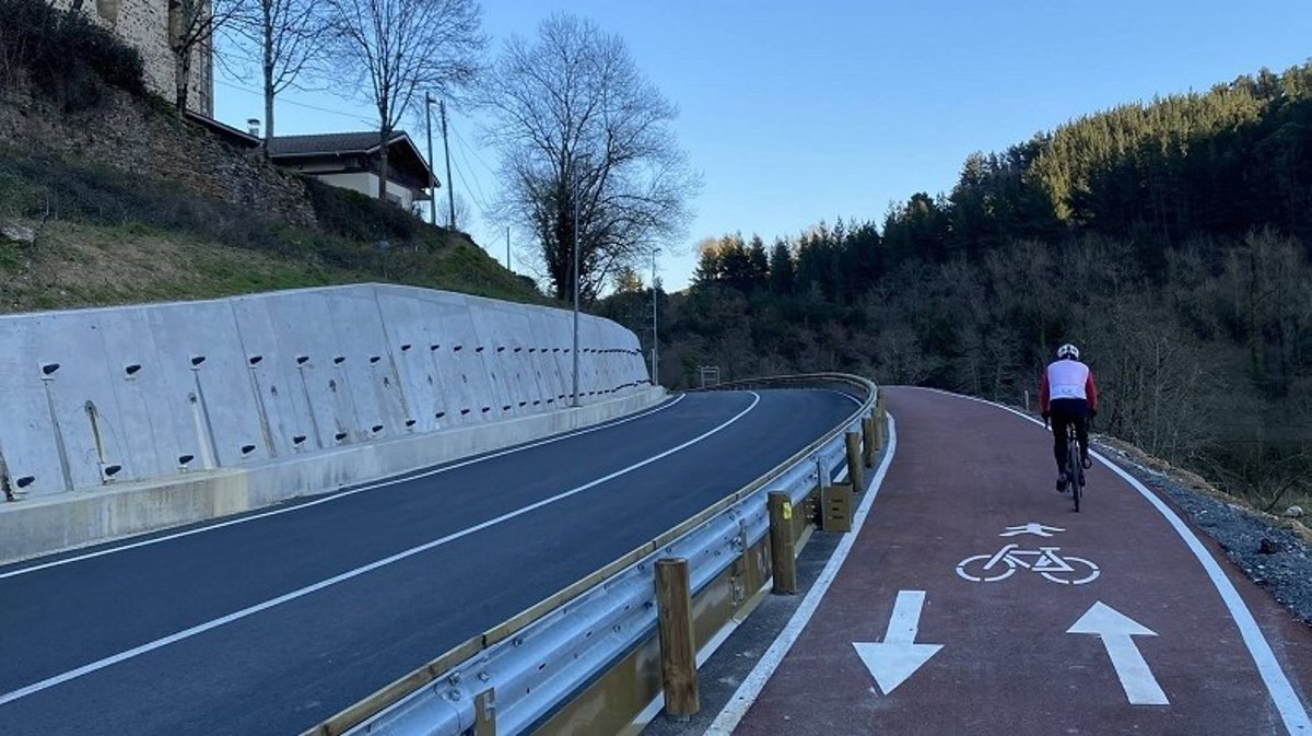 Foru erakundeak jakinarazi duenez, errepidearen plataforma handitzeko eta ezpondak egonkortzeko lanak egin dira, oinezkoentzako eta bizikletentzako bide berria egokitzeko beharrezko espazioa sortuz.
