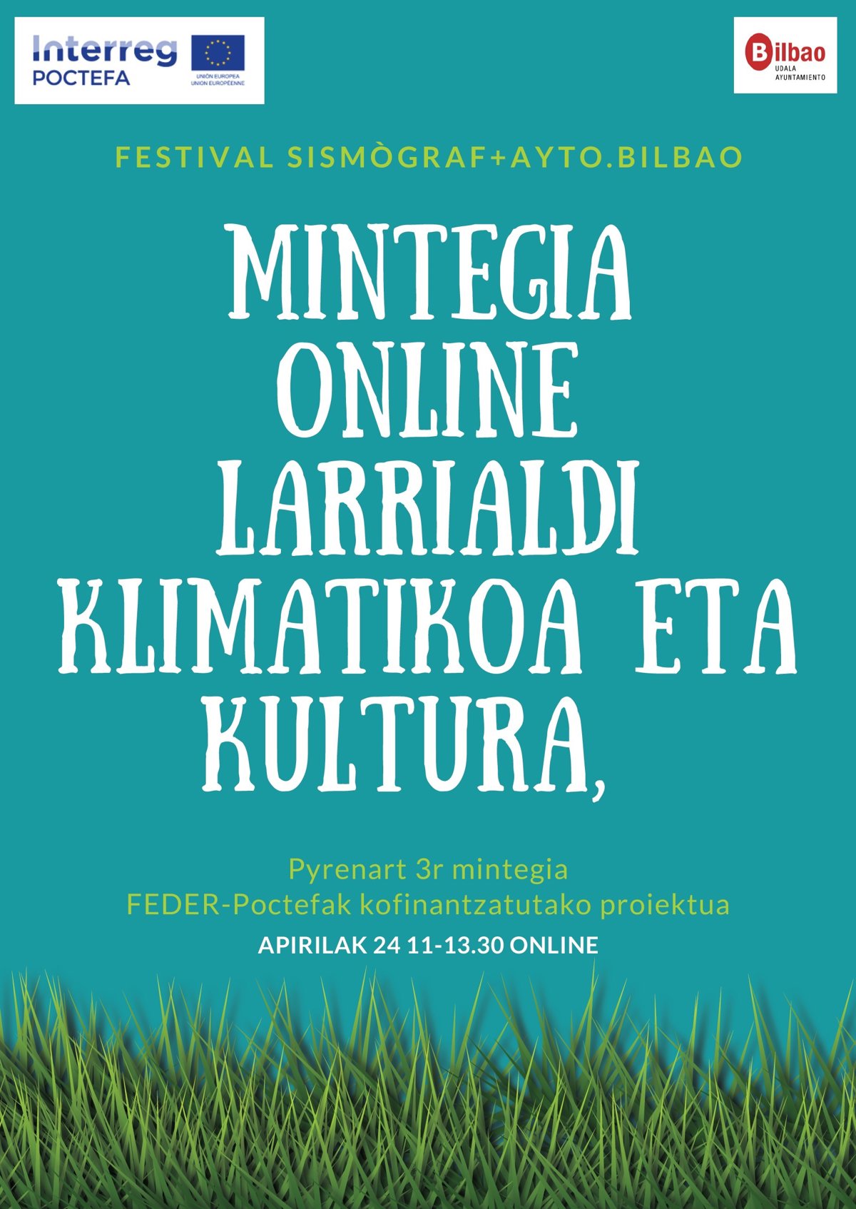 Bilboko Udalak 'Larrialdi klimatikoa eta kultura' izenburuko mintegia antolatuko du, sarean, Europako Pyrenart proiektuaren barruan. Hitzordua ostiralean da, apirilaren 24an, eta kultur jarduerek ingurumenean duten eragina gutxitzeko kasu praktikoak aztertuko dira, kulturgintzatik ingurumenari buruzko neurri azkar eta sendoak hartzeko.