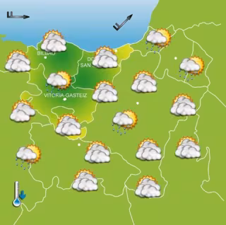Euskalmet meteorologiaren euskal agentziaren iragarpenaren arabera, asteazkenean, maiatzaren 8an, mendebal eta hego-mendebaldeko haizea indartsu ibiliko da, bolada gogor batzuk neurtuko dira eta tarteka traba egingo du. Hasieran hego-mendebaldetik joko du eta arratsaldean mendebaldera egingo du; egunaren amaieran ahuldu egingo da. Zerua, oro har, lainotuta ikusiko dugu eta tarteka euria egingo du. Arratsaldetik aurrera atertzera egingo du eta egunaren amaieran ostarteak zabalduko dira.