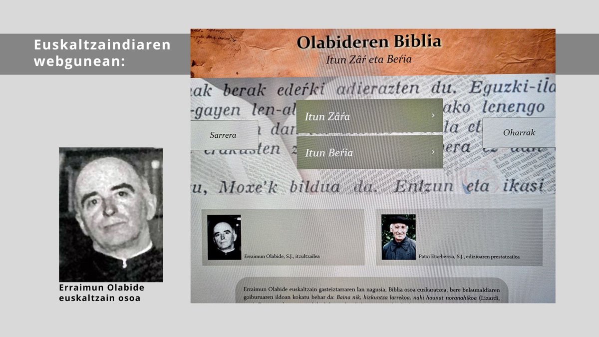 Erraimun Olabide josulagun eta euskaltzain osoaren (Gasteiz, 1869 - Tolosa, Okzitania, 1942) euskarazko Biblia erabiltzaileen esku jarri du Euskaltzaindiak, Akademiaren webgunean eskegita.