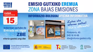 Horrela, azken asteotan, Gasteizko Udalak kanpaina espezifikoak egin ditu komunikabide nagusietan eta bere euskarriak erabili ditu ordenantzak dakartzan aldaketa nagusiak helarazteko. Gainera, 1.100 kartel inguru jarriko ditu emisio gutxiko eremua mugatzen duten kaleetako atarietan, bizilagunei neurria martxan jartzear dela gogoratzeko.