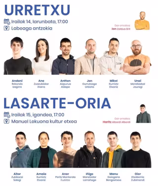 Lasarte-Oriako saioa igandean jokatuko da, irailaren 15ean, eta Aitor Zubikarai Salegi, Amaia Iturriotz Etxaniz, Aner Peritz Manterola 'Euzkitze', Iñigo Mantzizidor Larrañaga, Manu Goiogana Bengoetxea eta Oier Etxeberria Zubimendi izango dira taula gainean. Haritz Alberdi Alberdi ariko da gai jartzaile.