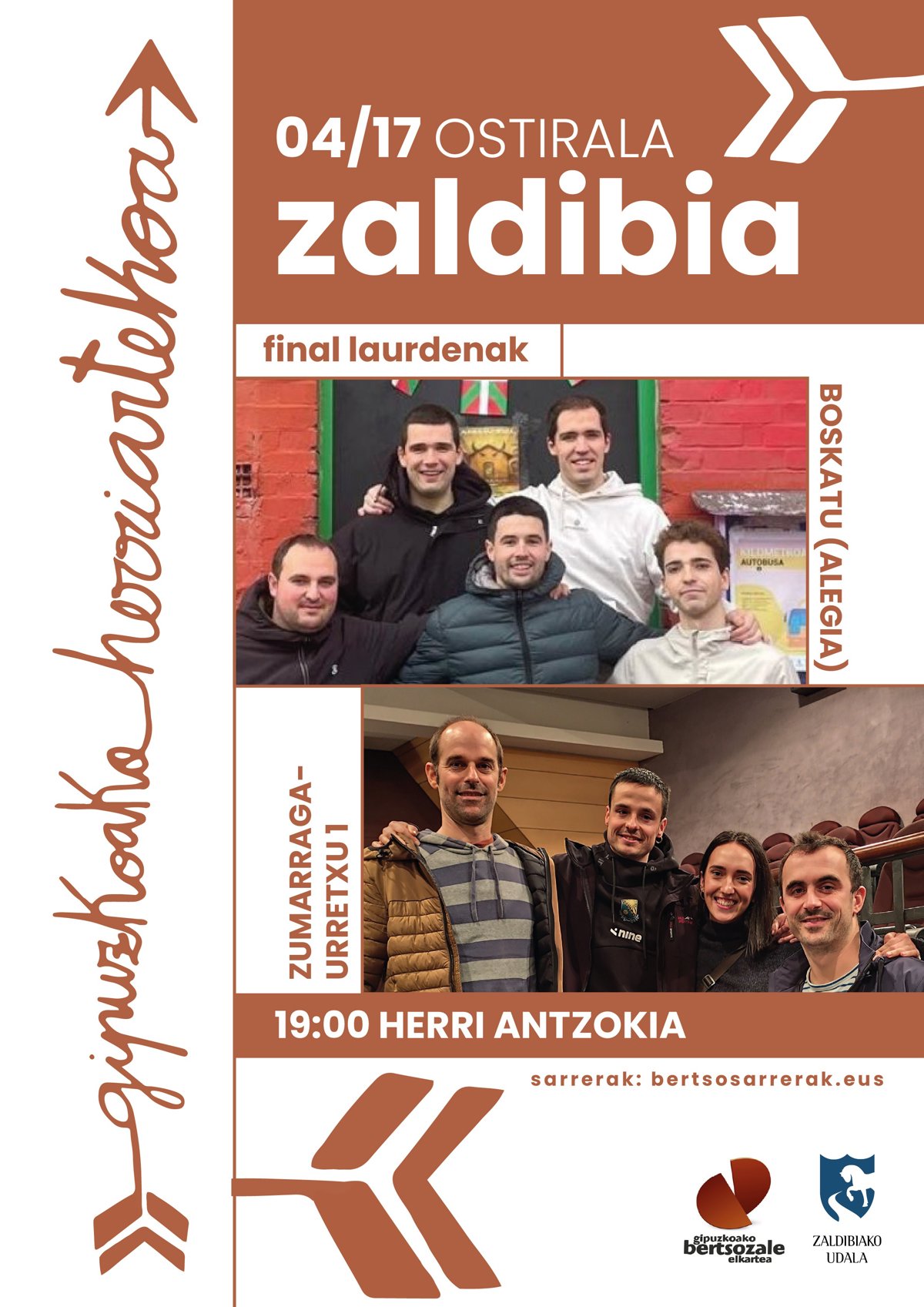 Horrela, bigarren fasea Zaldibiako kultur etxean hasiko da ostiralean, apirilaren 17an, 19:00etan, Boskatu eta Zumarraga Urretxu 1 taldeen arteko kanporaketarekin; larunbatean, apirilaren 18an, Zaharrak Berri eta Allepuntak kantatuko dute Azpeitian.