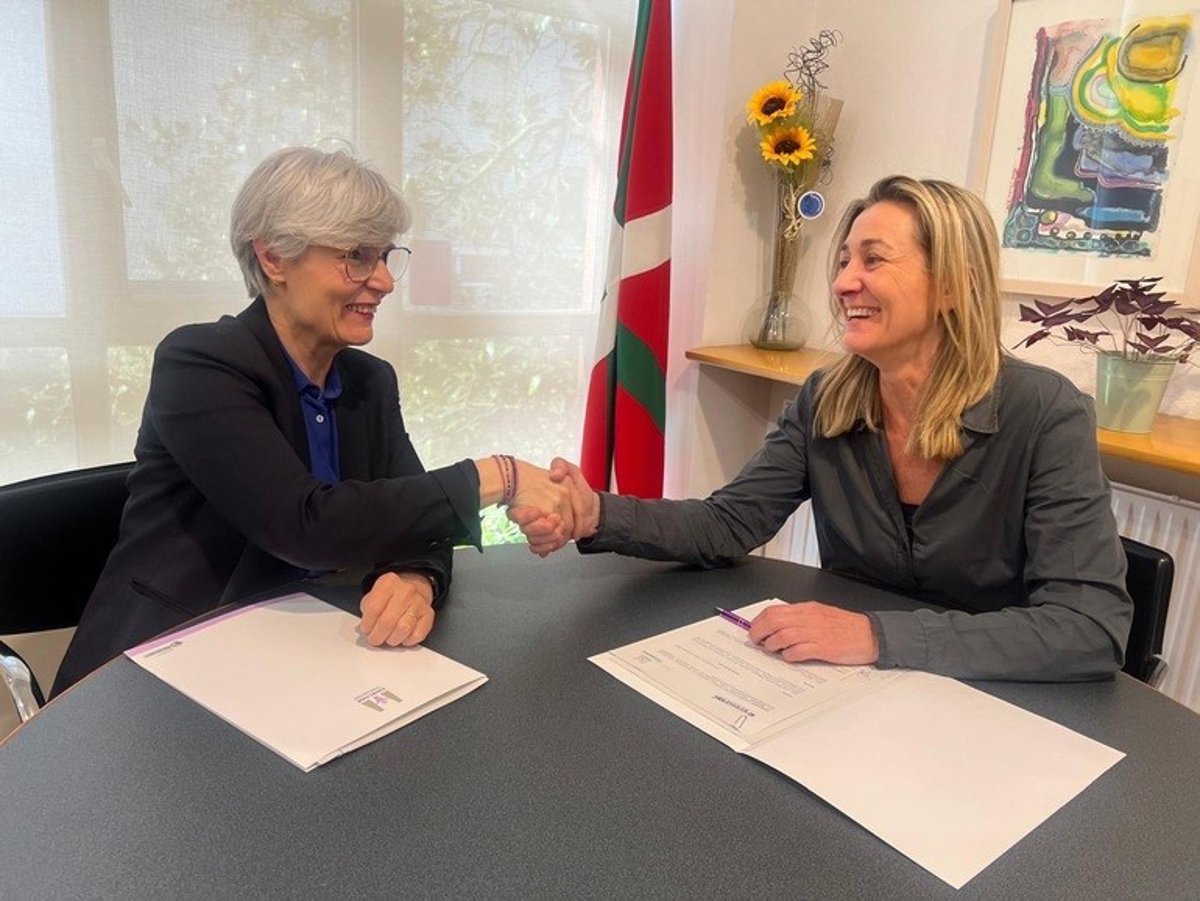 Miren Elgarresta Emakunde Emakumearen Euskal Erakundeko zuzendariak eta Isabel Iturbe EnpresariAK Euskadiko Emakume Enpresari, Zuzendari eta Profesionalen Federazioko presidenteak bi erakundeen arteko lankidetzarako esparru hitzarmen bat sinatu dute ostegun honetan, Euskadiko ekonomia eta enpresa esparruan emakumeen parte hartze aktiboa sustatzeko.