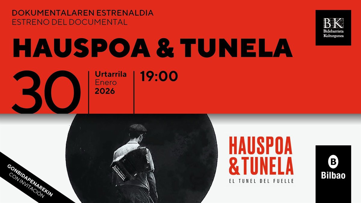 'Hauspoa & Tunela' dokumentalaren estreinaldia egingo dute Bilboko Udaleko Bidebarrieta Kulturguneko Areto Nagusian ostiralean, urtarrilaren 30ean, eta Iñaki Pinedo eta Gorka Hermosa lanaren gidoilari eta zuzendariak bertaratuko dira lanaren xehetasunak azaltzera.