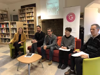 Kepa Sarasola UEUko zuzendariak, Urtzi Etxeberria Iker zentroko zuzendariak, Philippe Zavoli Paueko Unibertsitateko Baionako campuseko dekanoak, Miren Josu Omaetxebarria biltzarreko arduradunak eta Pauline Guelle ikertzaile gazteak parte hartu dute aurkezpenean.