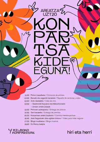 Bada, Konpartsakide Eguneko egitaraua 11:30ean hasiko da, pintxo txapelketarekin. Ondoren, 12:00etan, barazki eta sagardo banaketa eta ardo dastaketa egingo dira. Gastrotxiki ekimena 13:00etan hasiko da, Karpatxo eta Mekanitxin pertsonaiekin, eta ordu berean umeen arteko jolasak izango dira.