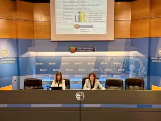 Eusko Jaurlaritzako Lan eta Gizarte Segurantzako sailburuorde Elena Perez Barredok jakinarazi ditu datuak astelehen honetan, Bilbon, 2023ko Lan Ikuskaritzaren balantzearen aurkezpenean, Lan Ikuskaritzako zuzendariorde Iciar Gonzalezekin batera.