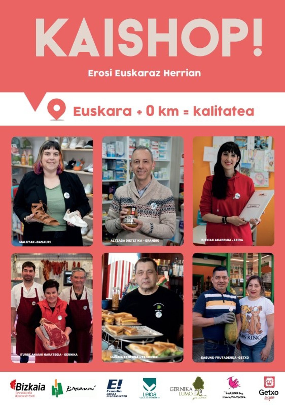 Alkarbide Bizkaiko euskara zerbitzuen bilguneak 'Kaishop!. Erosi euskaraz zure herrian. Euskara + 0 km = Kalitatea' kanpaina jarri du martxan lurraldeko hainbat udalerri eta eskualderekin elkarlanean eta Bizkaiko Foru Aldundiaren laguntzarekin, herrietako merkataritzan eta ostalaritzan euskara sustatzeko asmoz.