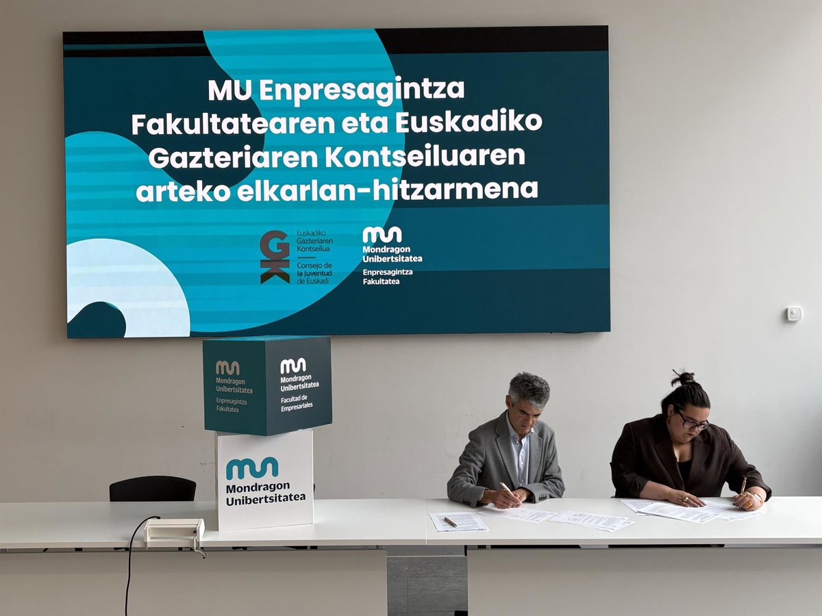 Mondragon Unibertsitateko Enpresagintza Fakultateak eta Euskadiko Gazteriaren Kontseiluak gazteriaren garapen integrala bultzatzeko hitzarmena sinatu dute. Akordioak lankidetza esparru bat ezarri du gazteen parte hartzean, ekintzailetzan eta garapen pertsonal eta profesionalean oinarritutako prestakuntza programak, baterako ikerketak eta proiektu berritzaileak garatzeko.