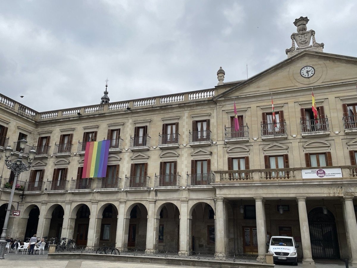 Gasteizko Udalak bat egin du asteazken honetan LGTBIQ+ Harrotasunaren Nazioarteko Egunarekin, eta ostadarraren kolorenm bandera jarri du udaletxeko fatxadan. Ospakizun hori dela-eta udal erakundeak aurreikusitako ekintzetako bat da udaletxeko fatxada, Floridako kioskoa, Arkupeko ibilbidea eta Antso Jakituneko pergola ostadarraren koloreekin argitzea.