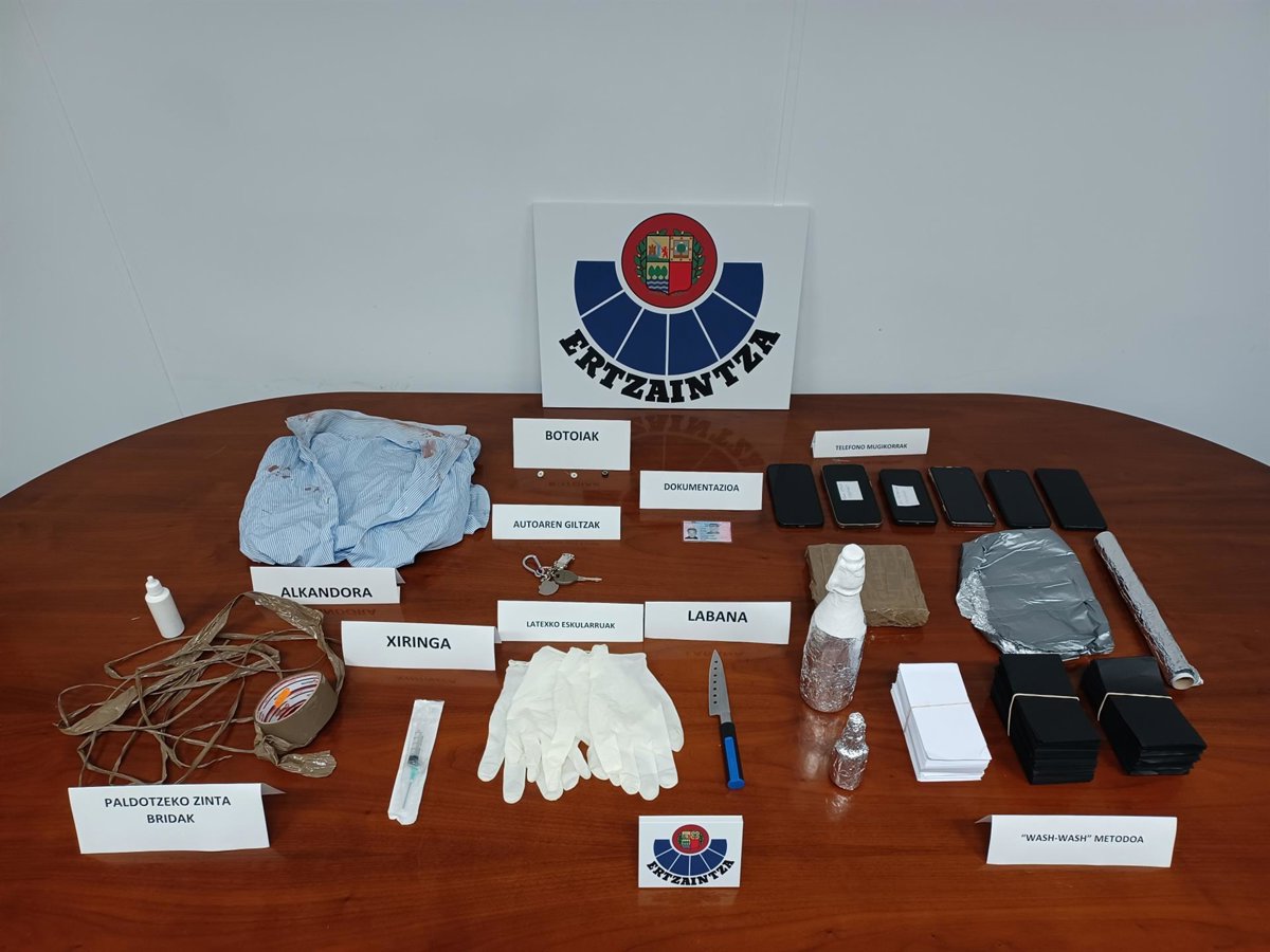 Agenteek begi ikuskapena egin zuten zaurituari eraso egin zioten Irungo etxebizitzan, eta hainbat froga aurkitu zituzten, hala nola enbalatzeko zinta bat, labana bat eta biktimak zein lau atxilotuek zeramatzaten sakelako telefonoak.