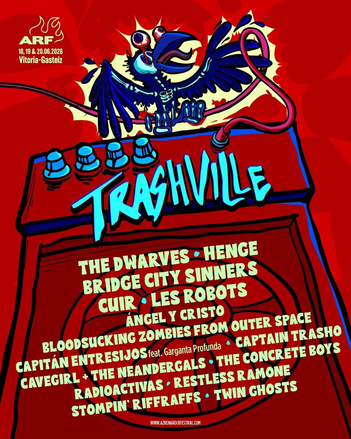 Gasteizko Azkena Rock Festival jaialdiak Trashville egitarauan izango diren lehen taldeen izenak ezagutarazi ditu, eta horien artean The Dwarves, Bridge City Sinners, Cuir, Henge eta Les Robots nabarmentzen dira, besteak beste.