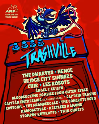 Orobat, Cave Girls + The Neandergals, The Concrete Boys, Radioactivas, Restless Ramone, Stompin' Riffraffs eta Twin Ghosts taldeak ere igoko dira Trashville guneko oholtzara.