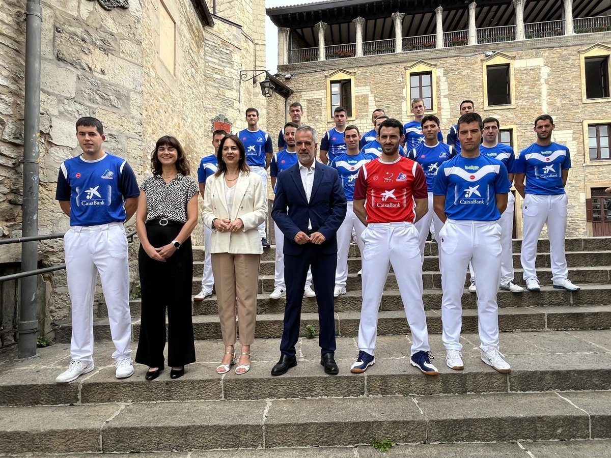 Ana Lopez de Uralde Gasteizko Udaleko Kirol zinegotziak, Unai Iglesias Baiko Pilotako arduradun komertzialak, Inaxio Errandonea Aspe Pilotako arduradun komertzialak, Alfredo Alonso Caixabankeko Arabako negozio arloko zuzendariak eta txapelketa jokatuko duten pilotariek hartu dute parte Villa Suso jauregian egindako aurkezpenean.