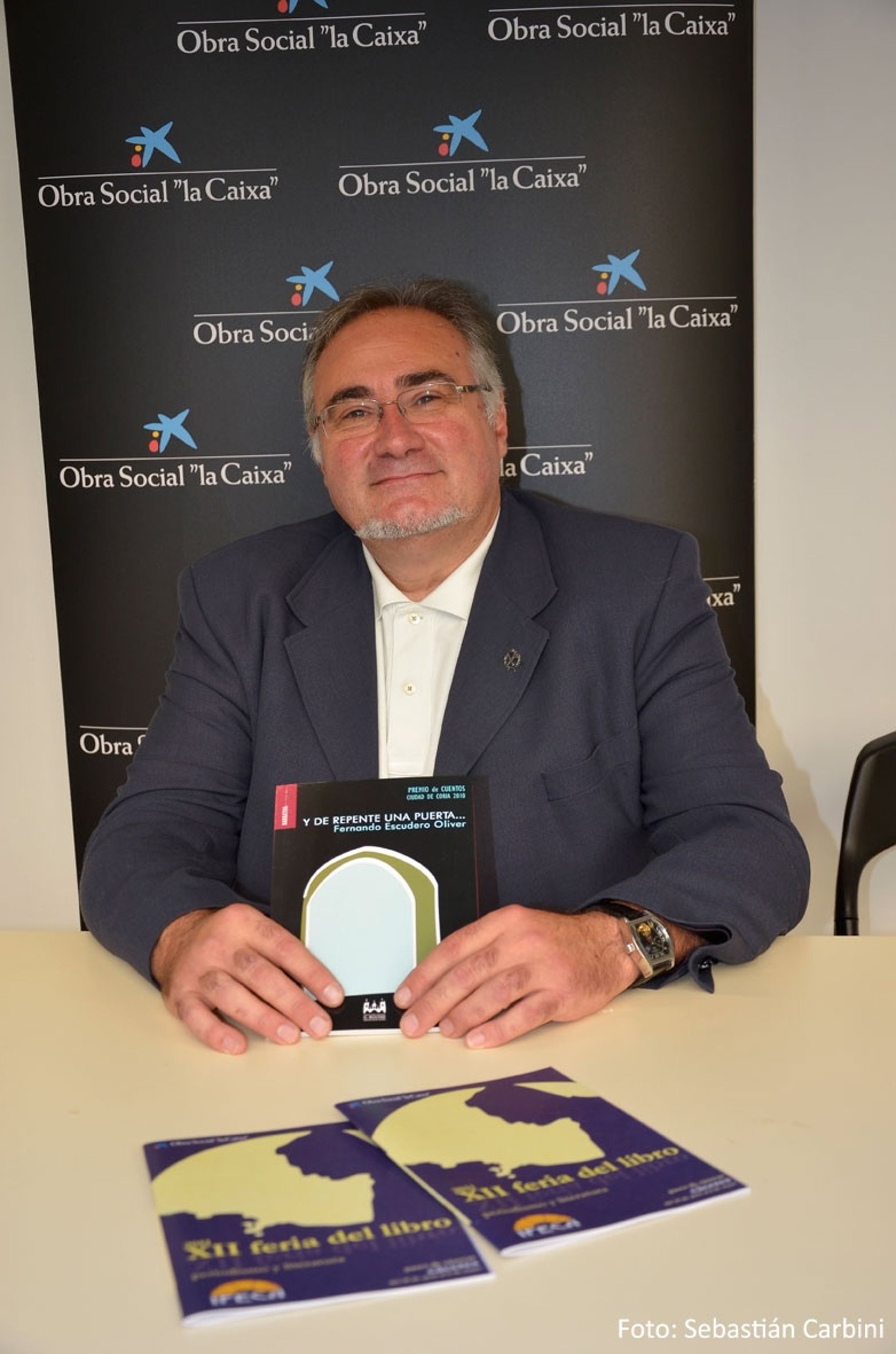 El ganador del vigésimo Premio de Cuentos 'Ciudad de Coria' de la Diputación de Cáceres, Fernando Escudero, ha visitado este martes la Feria del Libro de Cáceres para presentar la obra con la que ha obtenido este galardón, 'Y de repente una puerta'.