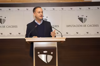 El diputado delegado de Deportes de la Diputación de Cáceres, Pablo Miguel López, en una rueda de prensa - DIPUTACIÓN DE CÁCERES