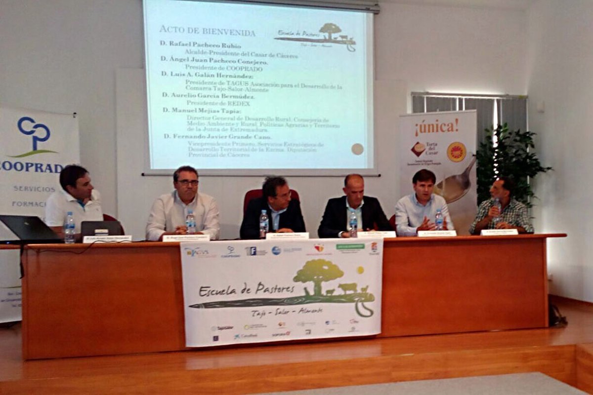 La Junta de Extremadura, la Diputación de Cáceres, la Asociación para el Desarrollo Integral de la Comarca Tajo-Salor-Almonte (Tagus), Cooprado, el Centro de Investigaciones Científica y Tecnológicas de Extremadura (Cicytex), la Fundación Universidad-Sociedad de la UEx y el Ayuntamiento de Cáceres se han unido para firmar el Protocolo General de Colaboración para el Desarrollo de la Escuela de Pastores de Tajo-Salor Almonte.