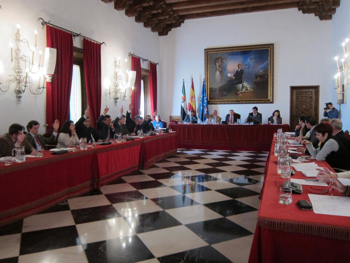 El Pleno de la Diputación Provincial de Cáceres ha aprobado, en una sesión extraordinaria este lunes, los Presupuestos Generales de la institución para 2015 que registran una subida del 6,83 por ciento y alcanzan los 116.186.500 euros de ingresos y gastos equilibrados, con un capítulo de inversiones totales que llega a los 54.156.628 euros, lo que supone un incremento del 35,26 por ciento respecto a 2014.